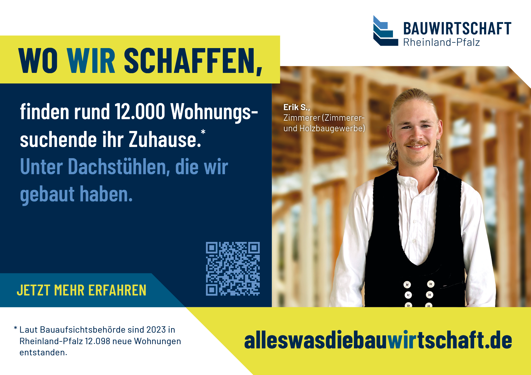 Die Bauwirtschaft ist mit ihrem enormen Anteil am Bruttoinlandsprodukt für die gesamte Volkswirtschaft von maßgeblicher Bedeutung – auch in Rheinland-Pfalz, wo sie Arbeitsplätze schafft und sichert.