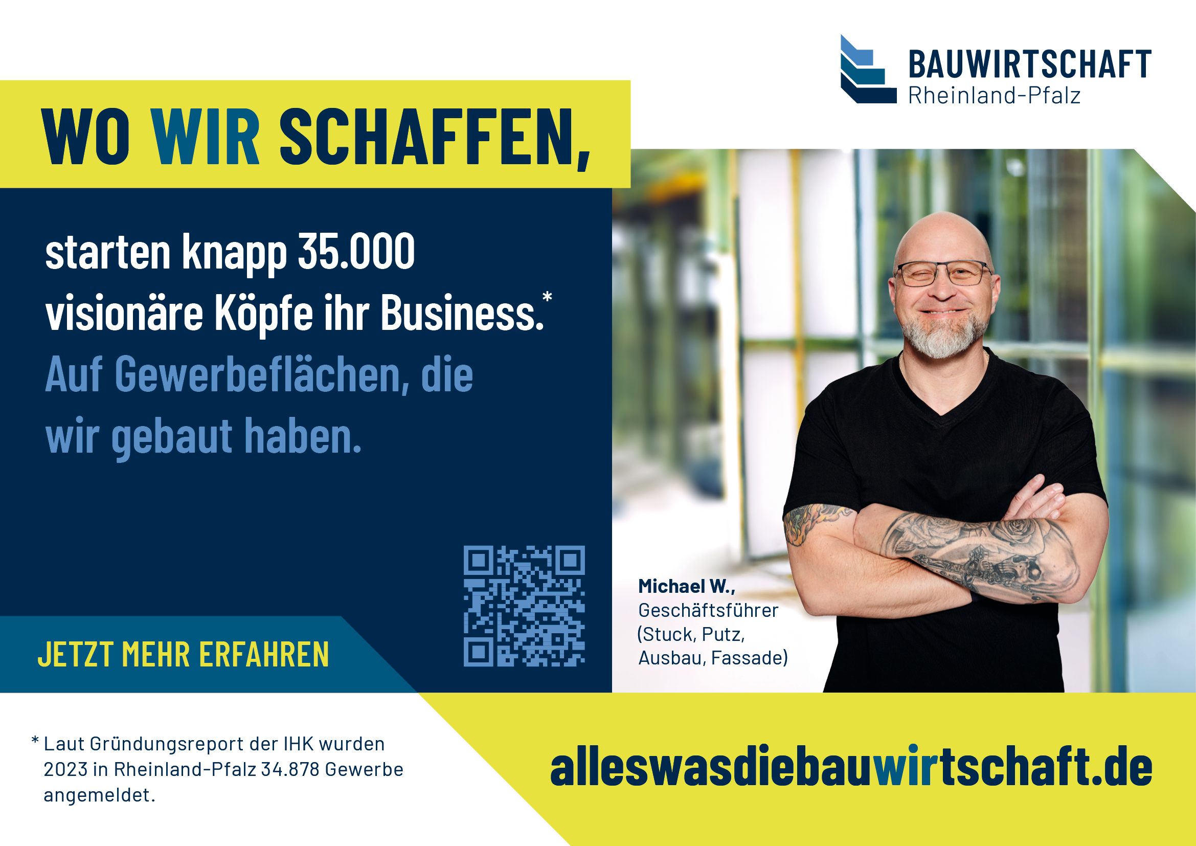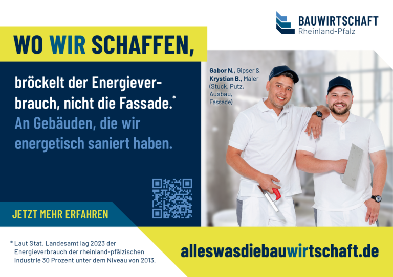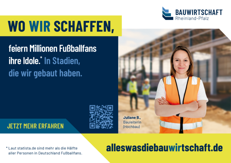 Unsere Kampagne lebt davon, dass viele Betriebe in Rheinland-Pfalz sie sichtbar machen und nach außen tragen. Wir freuen uns, wenn auch Sie dabei sind und die Bauwirtschaft sichtbar machen.