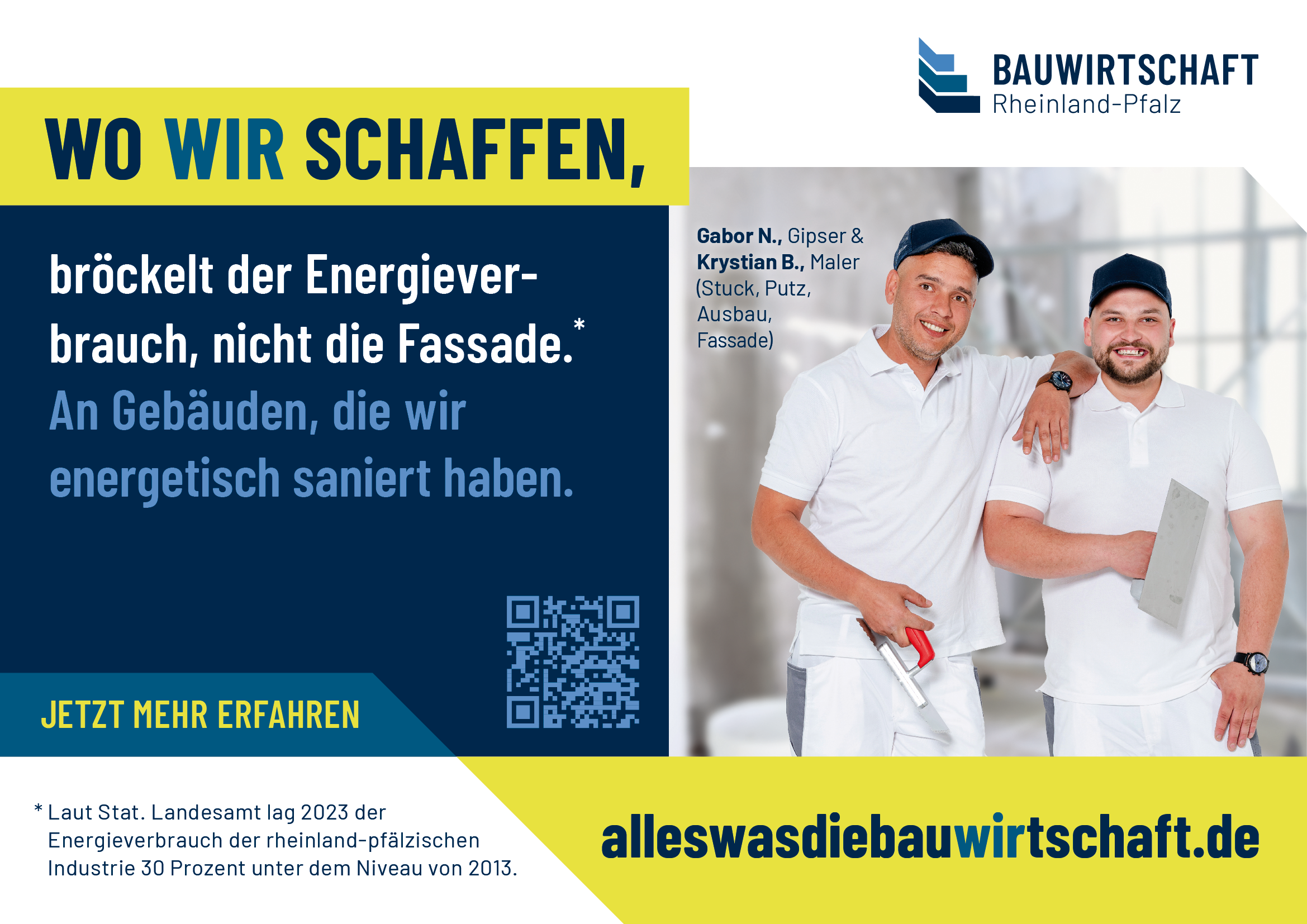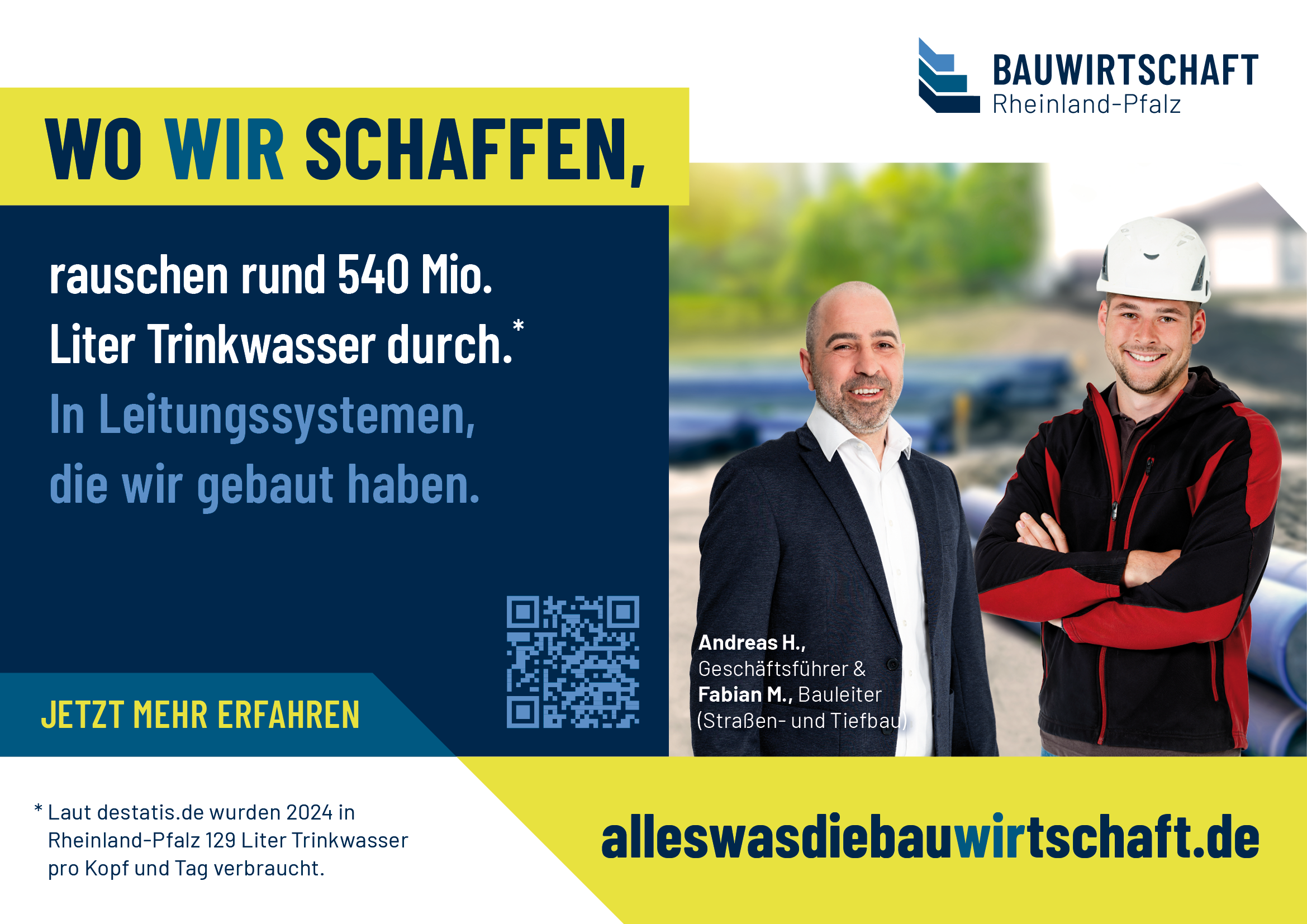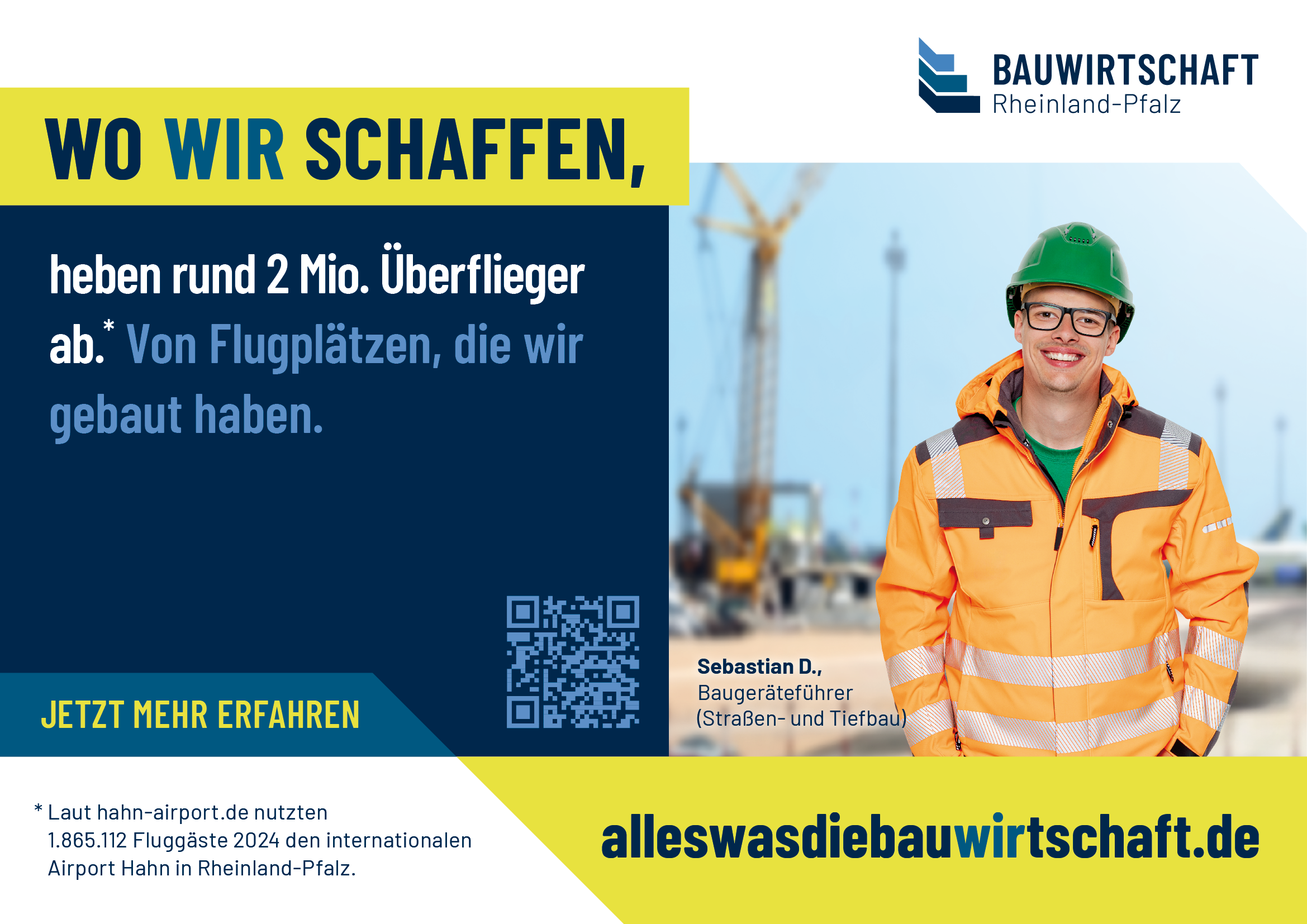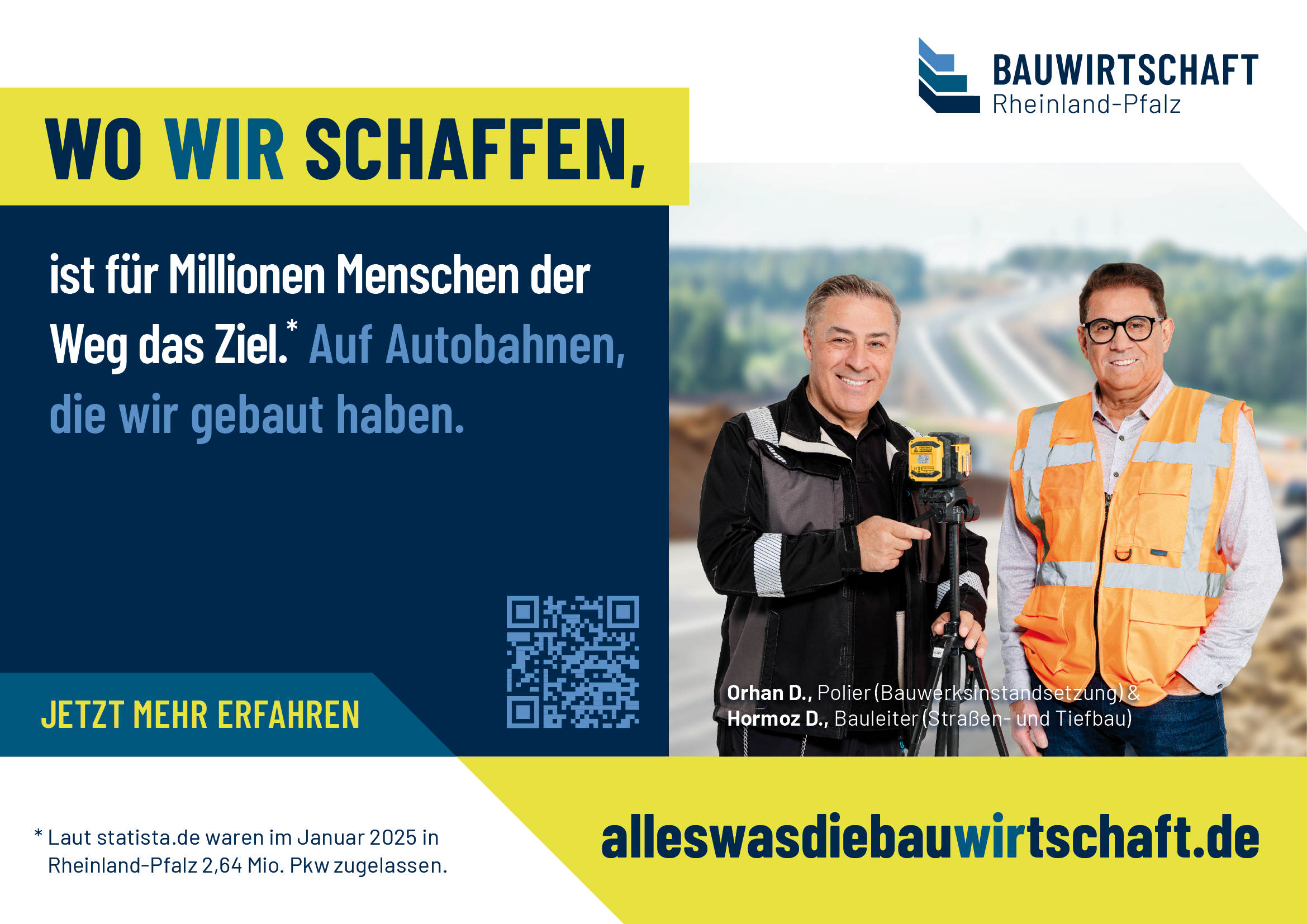 Eine Veränderung oder Weitergabe an Dritte ist nicht gestattet. // Werbliche oder kommerzielle Nutzungen außerhalb der offiziellen Kampagne (z. B. für eigene Produkte oder Dienstleistungen) sind nicht erlaubt. // Die Nutzung erfolgt auf eigene Verantwortung; eine Haftung der Bauwirtschaft Rheinland-Pfalz e. V. für Schäden, die durch die Verwendung entstehen, ist ausgeschlossen. // Es dürfen keine Motive oder Elemente aus den Datenpaketen in einen irreführenden oder diskriminierenden Zusammenhang gestellt werden.